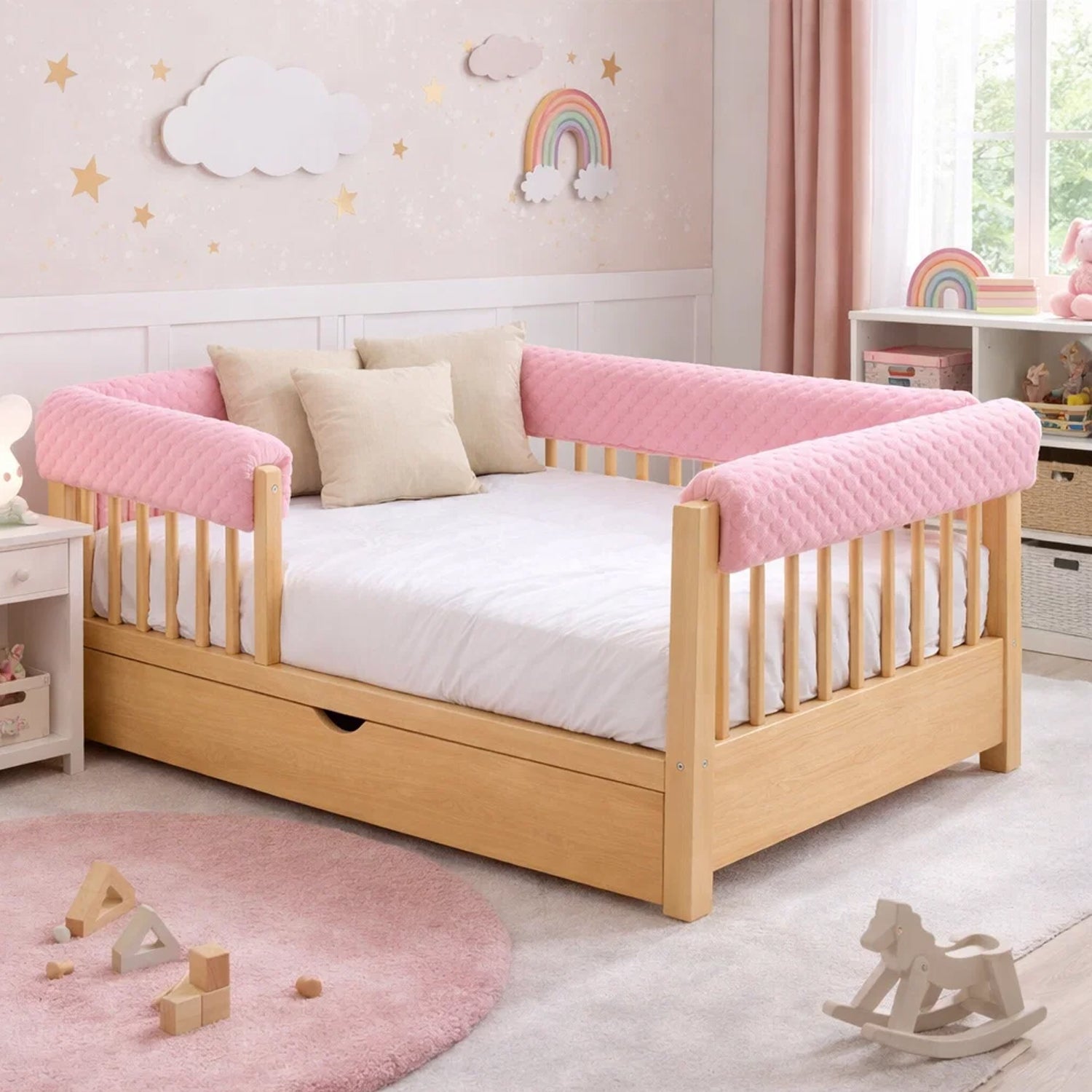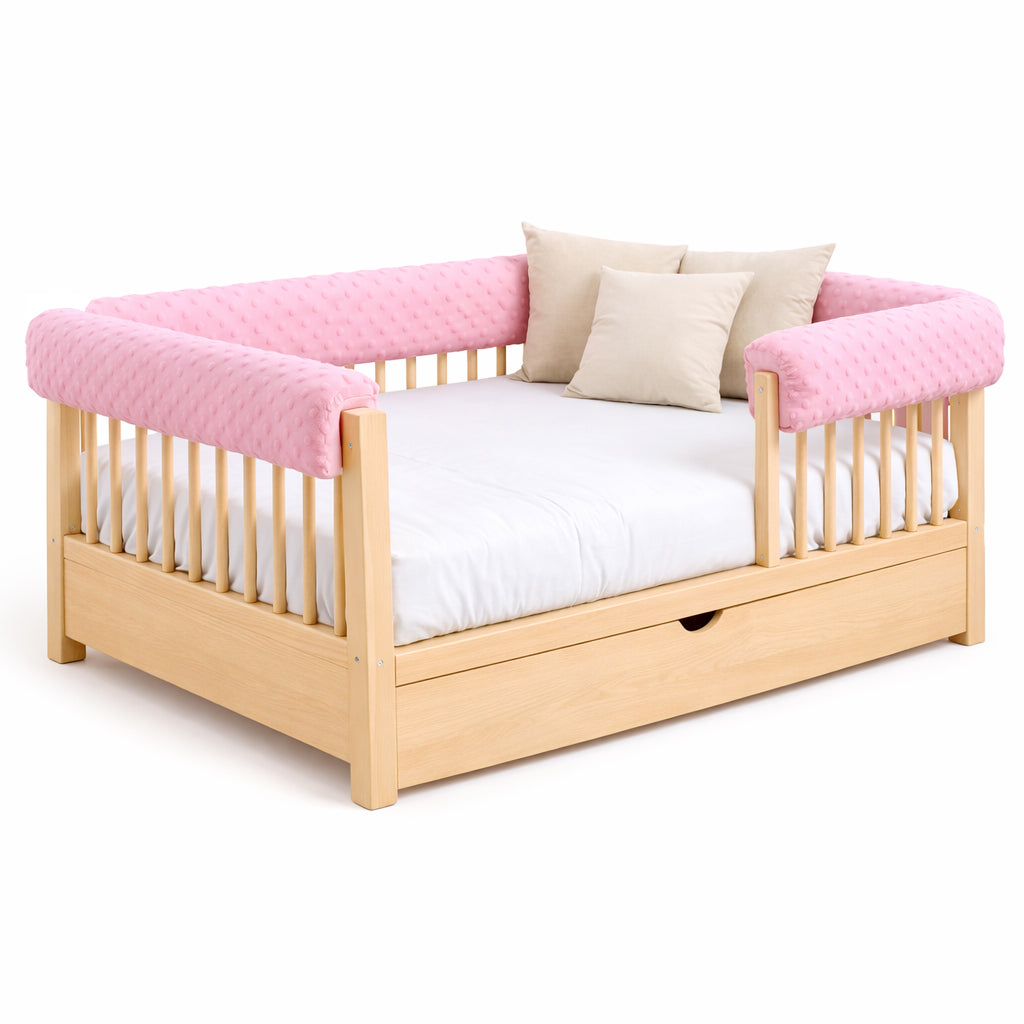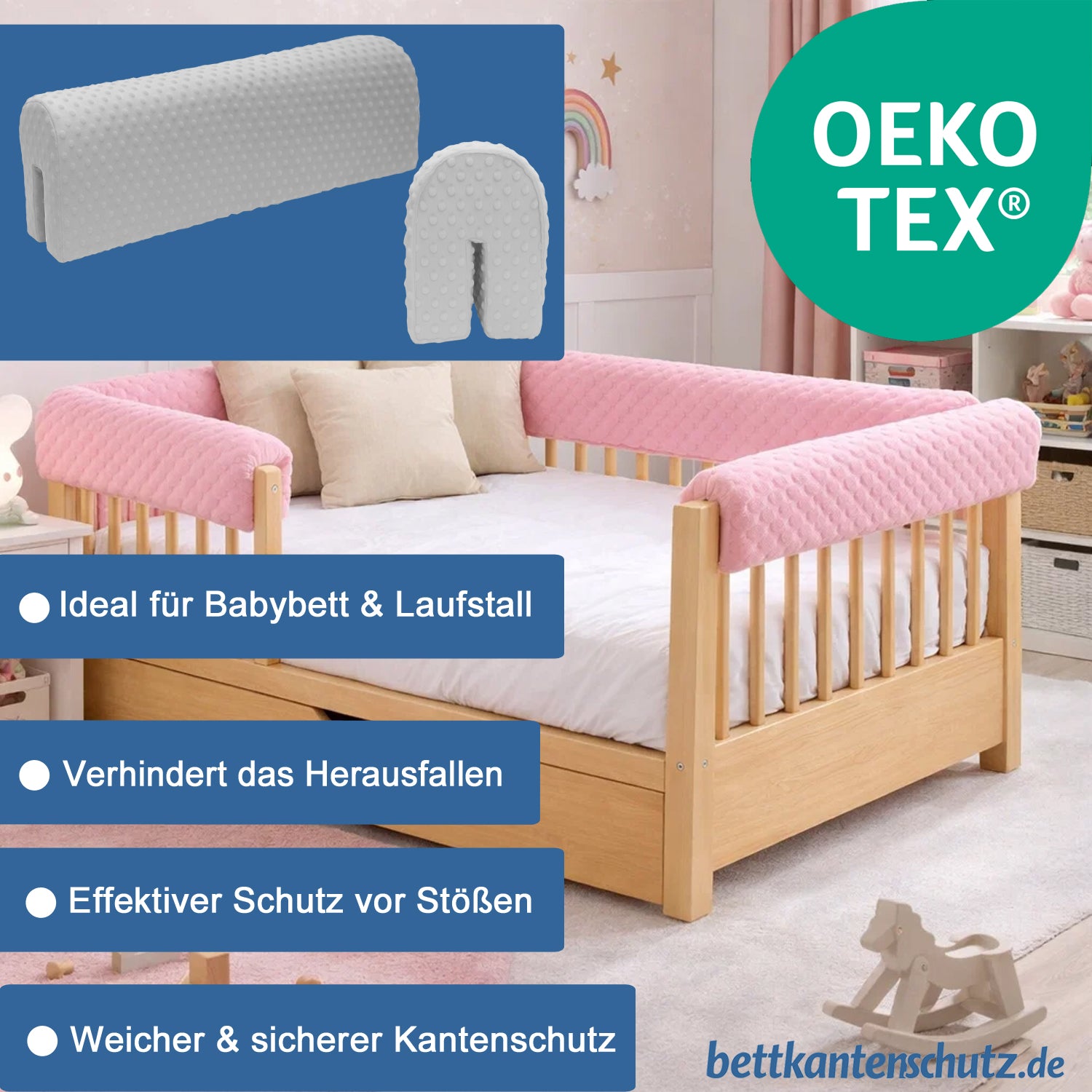 Bettkantenschutz – Polsterung für Gitterbett & Bettkante – Rosa Minky